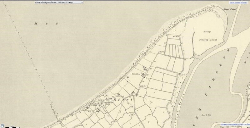 OS maps National Library of Scotland: OS Six Inch 1888-1915 110560 Somerset Sheet XXXVIII.NW. Revised 1902, Published 1904 (Second Edition) showing the extended shingle recurve with Fenning Island attached to the Stert Peninsula